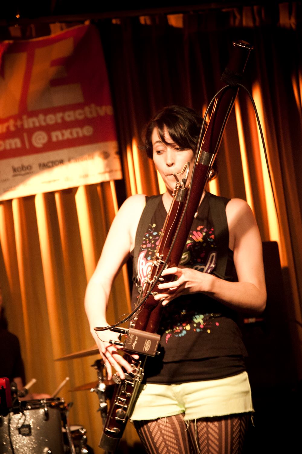 Krista Wodelet plays in a band called Sidney York. She has an MM from USC and plays bassoon as well as other things including singing in the band. She has a unique way of connecting the L.R. Baggs preamp to her bassoon instead of herself for quick instrument changes. I might start doing this myself.